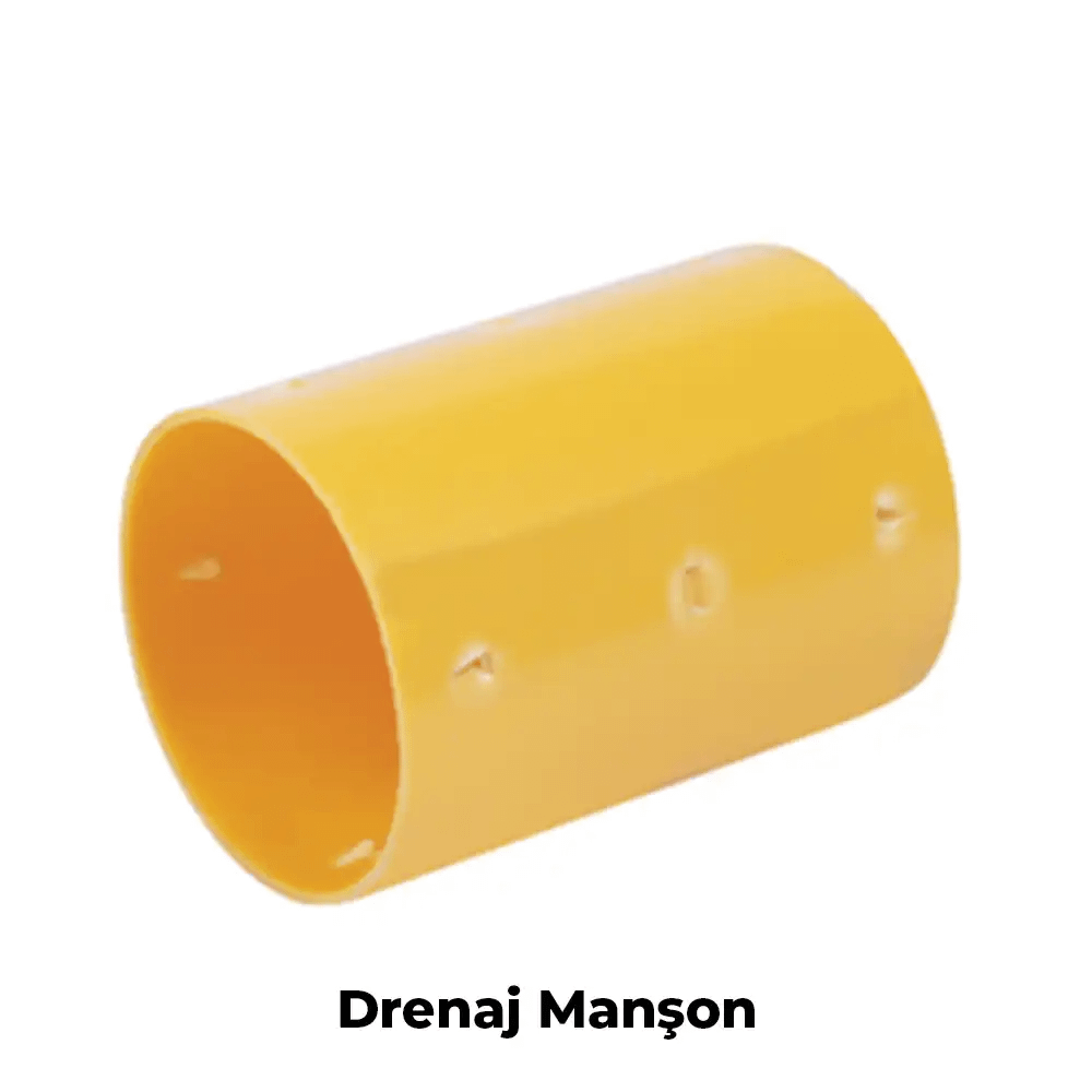 Yer altı ve yer üstünde biriken durgun ve zararlı suların tahliyesinde kullanılan, U-PVC hammaddeden üretilen PVC drenaj boruları, TS 9128 standardına uygundur. Genellikle sarı renkte olup, 50 – 80 – 100 – 125 – 160 – 200 mm çaplarında ve çoğunlukla delikli olarak, 50 – 100 metre uzunluğunda dairesel kesitli kangal formunda üretilmektedir. Minimum 50 yıl kullanım ömrüne sahiptir.